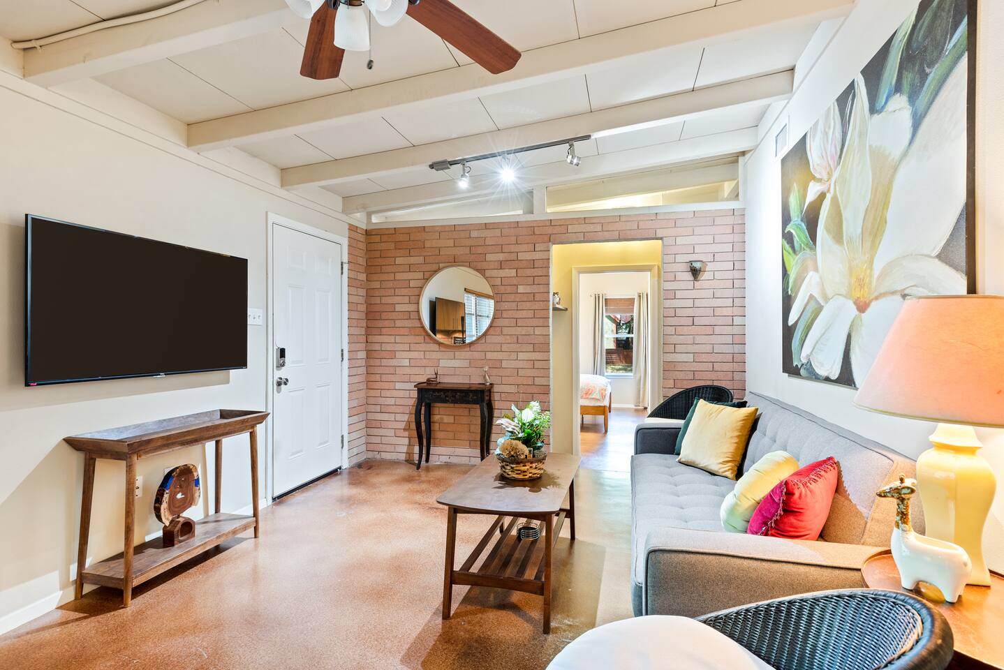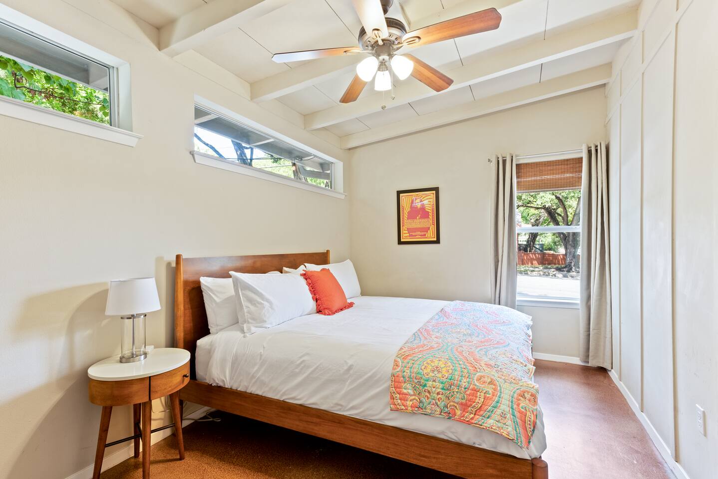 You will love the warmth and comfort of this eclectic mid-century home. Located in the heart of the Hancock neighborhood, this home is just 1 mile from UT-Austin, St. David's Medical & 10 minutes to Downtown, Rainey & 6th. Delight in the comforts of a home away from home as you cook in the well-equipped kitchen or throw some burgers on the grill in the charming backyard. You can rest easy in your three private bedrooms or stretch out in the spacious living room with extra large TV. Pet friendly!