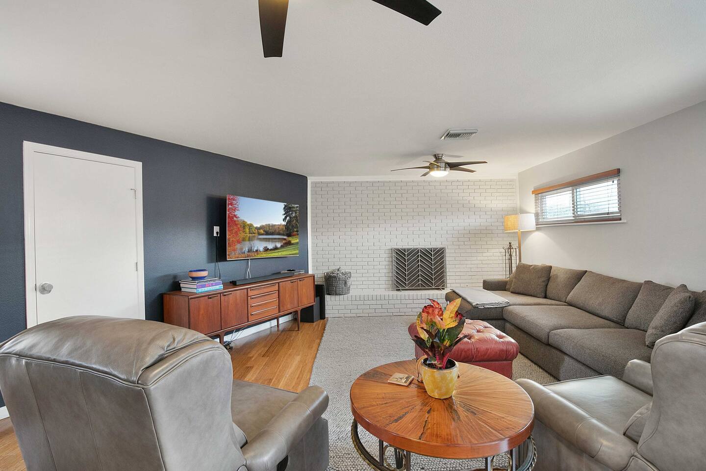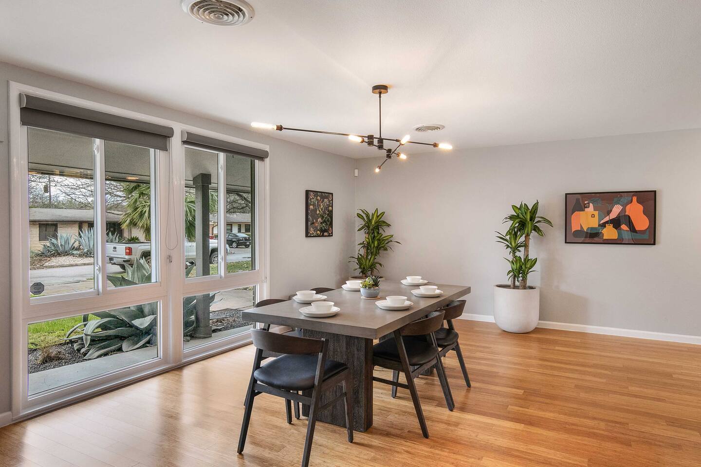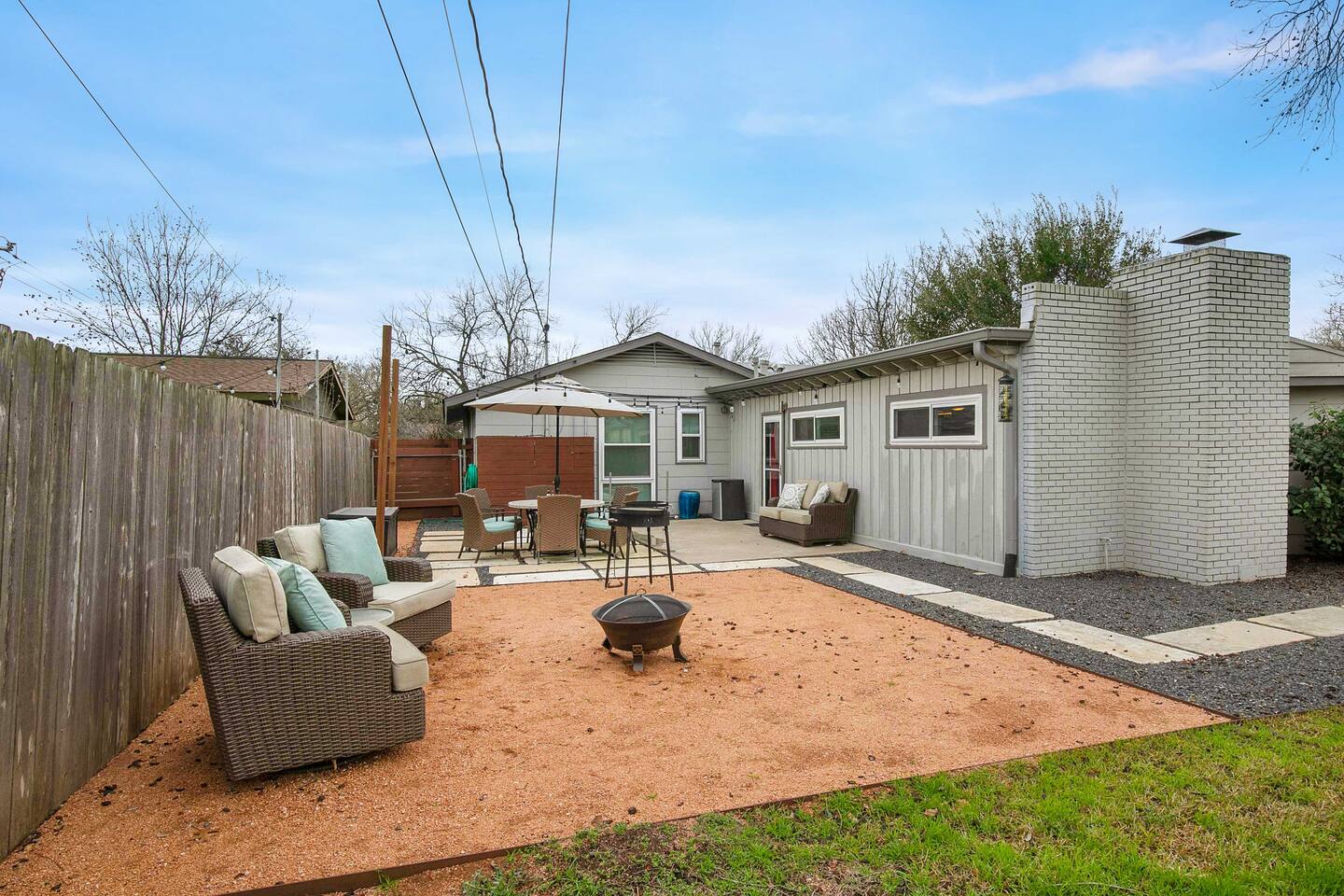 You'll love the cool mid-century vibe and comfort of this spacious 3 bed 2 bath home. Located in Windsor Park just 1 mile to family-friendly Mueller and Dell Children's, 10 mins to UT & 15 mins to Downtown, Rainey & 6th St. Delight in the comforts of a home away from home as you cook in the well-equipped kitchen or throw some steaks on the KUDU grill. The fenced-in yard with comfy patio seating, a fire pit & a speaker system is perfect for hanging out. Workspace to WFH. Pet friendly (with fee)!