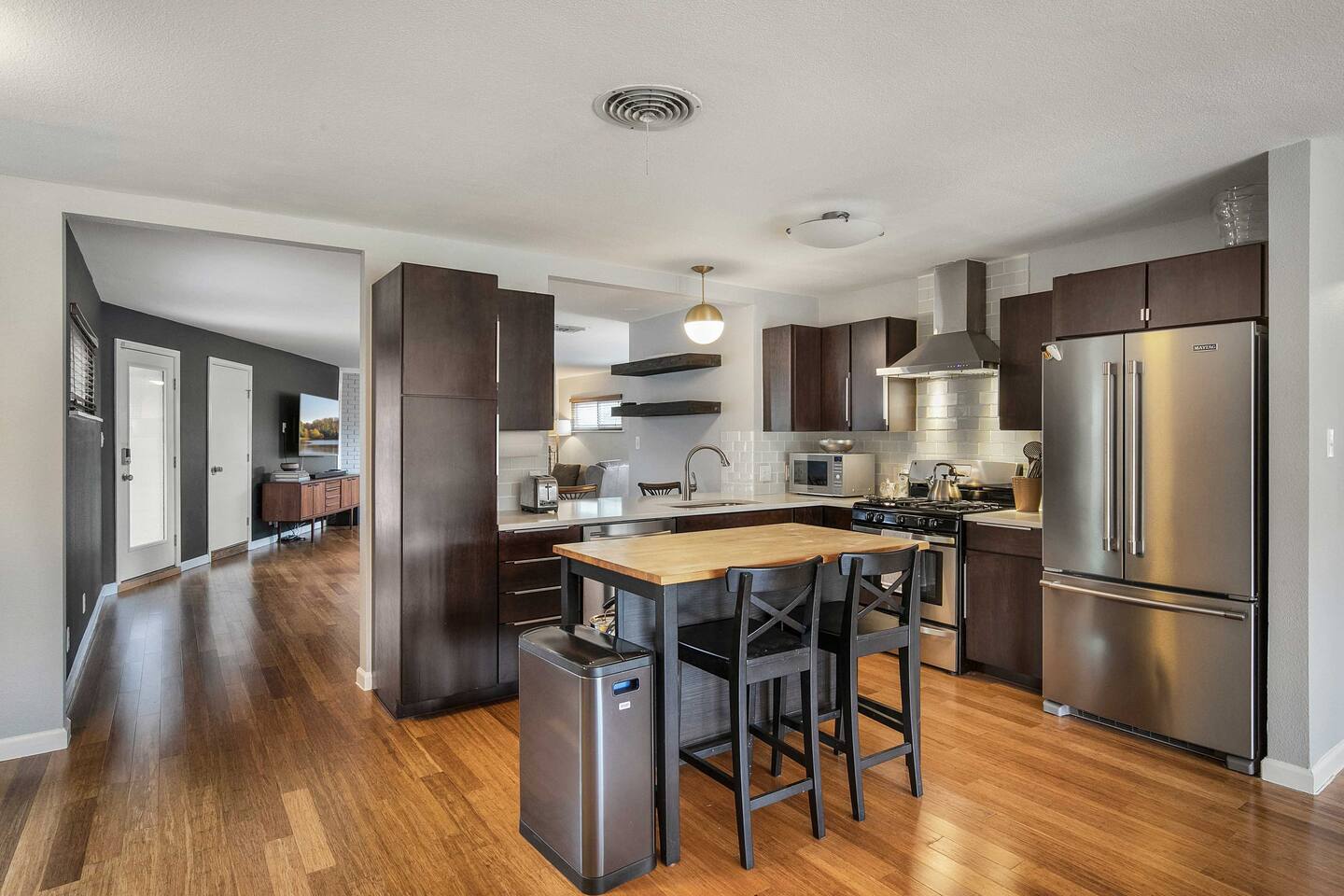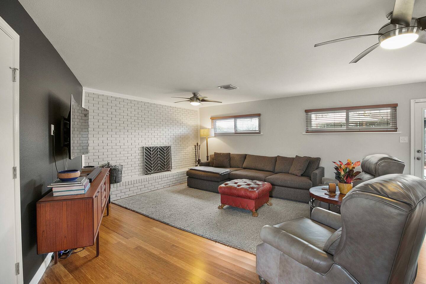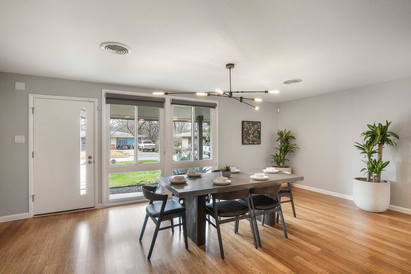 You'll love the cool mid-century vibe and comfort of this spacious 3 bed 2 bath home. Located in Windsor Park just 1 mile to family-friendly Mueller and Dell Children's, 10 mins to UT & 15 mins to Downtown, Rainey & 6th St. Delight in the comforts of a home away from home as you cook in the well-equipped kitchen or throw some steaks on the KUDU grill. The fenced-in yard with comfy patio seating, a fire pit & a speaker system is perfect for hanging out. Workspace to WFH. Pet friendly (with fee)!