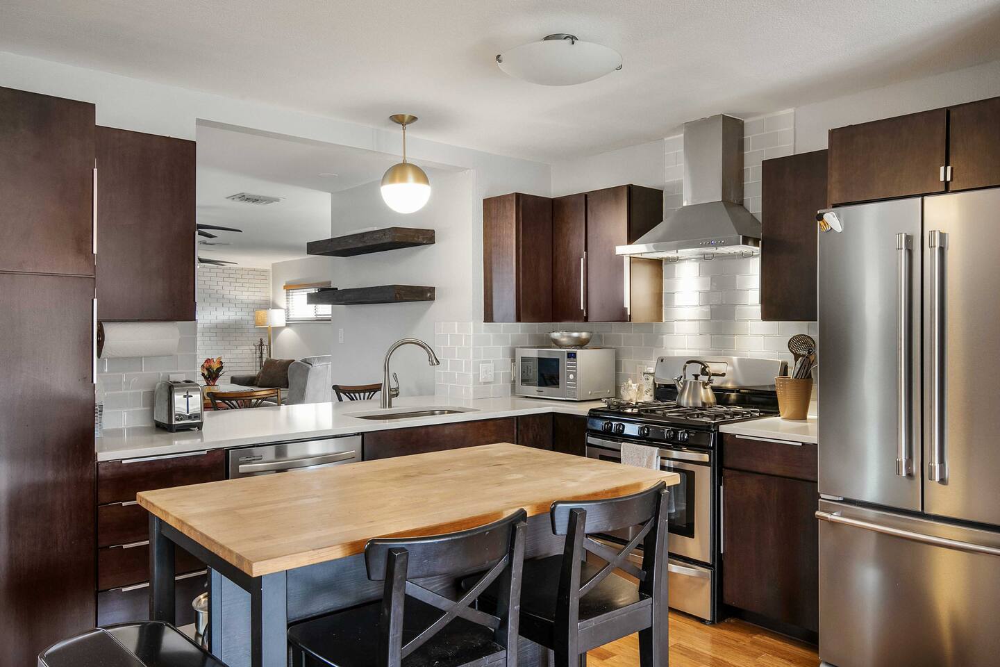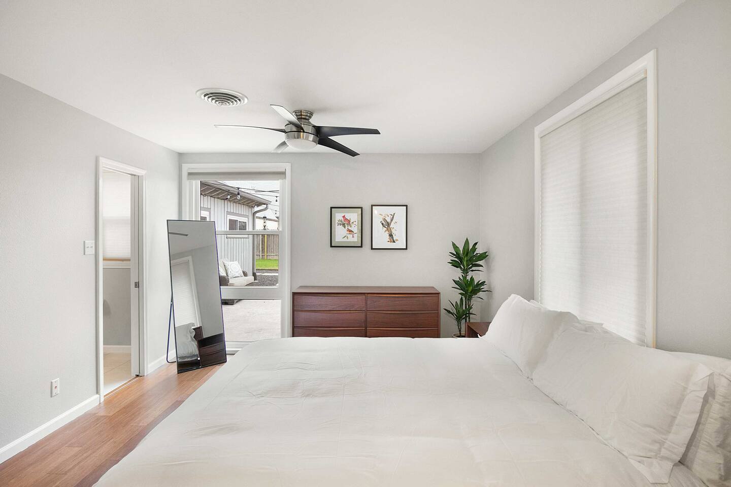 CONVENIENCE We're conveniently located close to family-friendly Mueller where you'll find some restaurants, bars, and coffee shops like Torchy's Taco's, Halcyon, and Veracruz All Natural. Mueller has a great park to run around a lake and a food truck park! There's also an Alamo Drafthouse Cinema (a Texas fav!). From here you can walk to an Austin local favorite - Little Deli Pizzeria (#2 best pizza in Austin by Austin Eater). A short drive will take you to the North Loop and Hyde Park neighborhoods for even more local flare like Foreign & Domestic (featured on DDD) and Home Slice Pizza (Austin fave!!). This home is also a popular location for visitors of Dell Children's, only 1.5 miles away. Hop on the highway which gets you straight to downtown and Rainey street in just 15 minutes. WORK FROM HOME High-speed internet and a built-in workstation make it a productive place to work from home. COMFORT After a day of exploring Austin, relax in one of the three bedrooms. The master bedroom features a California King Bed with ensuite bathroom and walk-in shower. The other two bedrooms each have a queen bed and share a guest bathroom with shower/tub combo. We provide towels, shampoo, conditioner, and body wash for your convenience. The living room has a smart TV to which you can connect your accounts like Netflix. There is no cable. The kitchen is spacious and well-equipped with plenty of cookware, dishware, dishwasher, toaster, blender and tea kettle. There's even a wine fridge! Plus a washer and dryer in unit. PET-FRIENDLY Fenced-in backyard for friendly, well-behaved pets up to date on flea, tick & vaccinations. Please let us know if you will be bringing a pet, $30 per pet per day for short stays. For longer stays, $150/week for the first pet and $100/week for each additional pet. THINGS TO DO Upon booking you'll receive a digital house manual with a guide to some great local restaurants in the neighborhood. Popular destinations from here-- Bergstrom International Airport: 15 minutes by car, 11.3 miles Downtown: 11 minutes by car, 6.2 miles Zilker Park: 17 minutes by car, 11.1 miles Rainey Street: 12 minutes by car, 5.6 miles St. David's Medical Center: 7 minutes by car, 3.2 miles UT Football Stadium: 10 minutes by car, 5.3 miles Lee & Joe Jamail Texas Swimming Center: 8 minutes by car, 5.1 miles OTHER THINGS TO NOTE-- The home is equipped with surveillance at all entrances - front, side, and back patio entrances. Fully Licensed by the City of Austin OL 1683 15