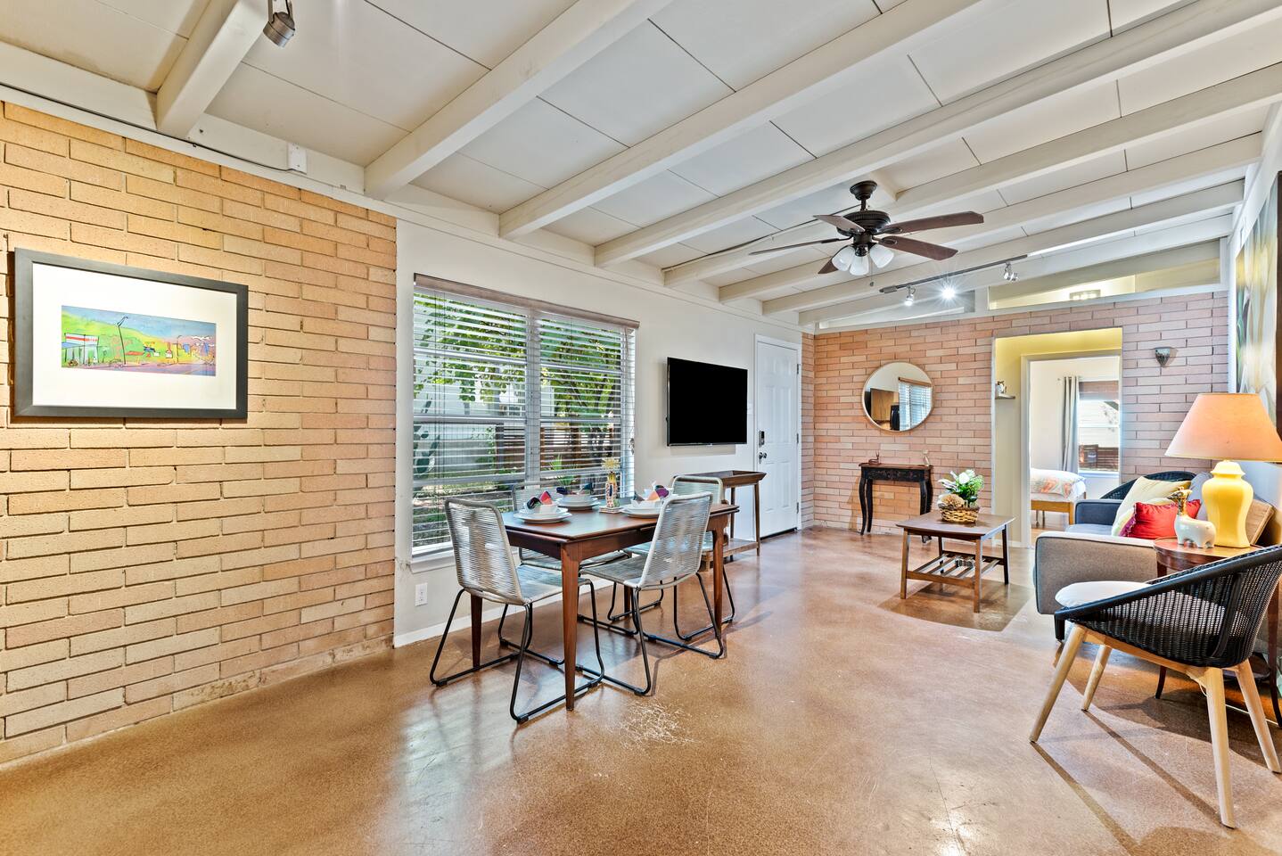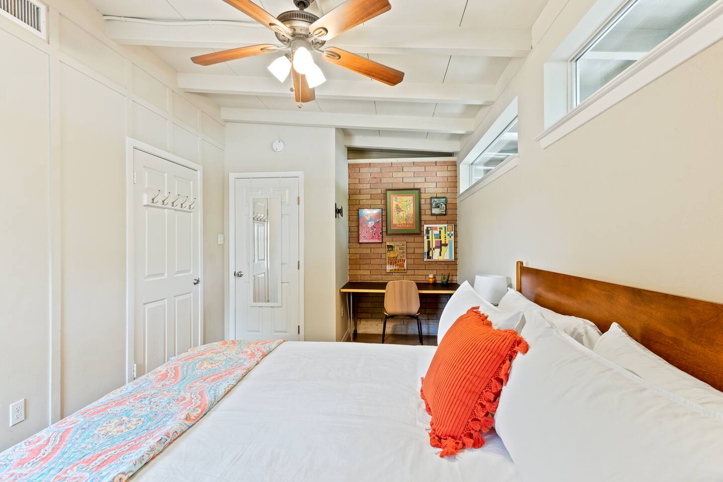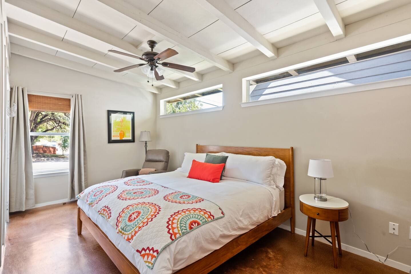 You will love the warmth and comfort of this eclectic mid-century home. Located in the heart of the Hancock neighborhood, this home is just 1 mile from UT-Austin, St. David's Medical & 10 minutes to Downtown, Rainey & 6th. These are two separate units that are attached so you will have two kitchens, two living rooms, 5 bedrooms, 2 baths, and a shared courtyard with dining and gas grills. Great for two families traveling together or friends to have separate spaces but come together. Pet friendly!