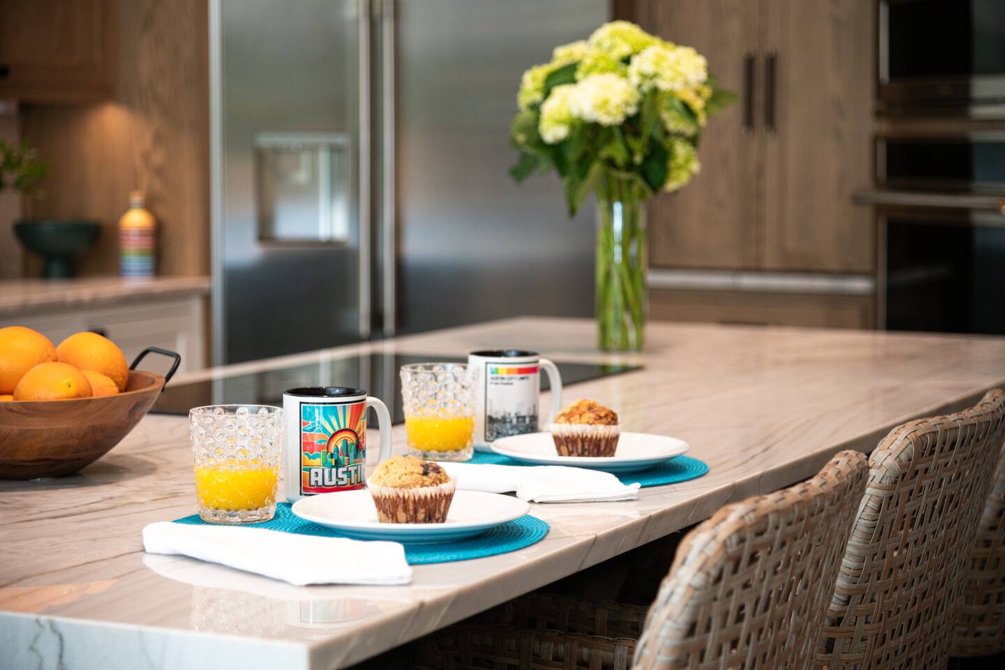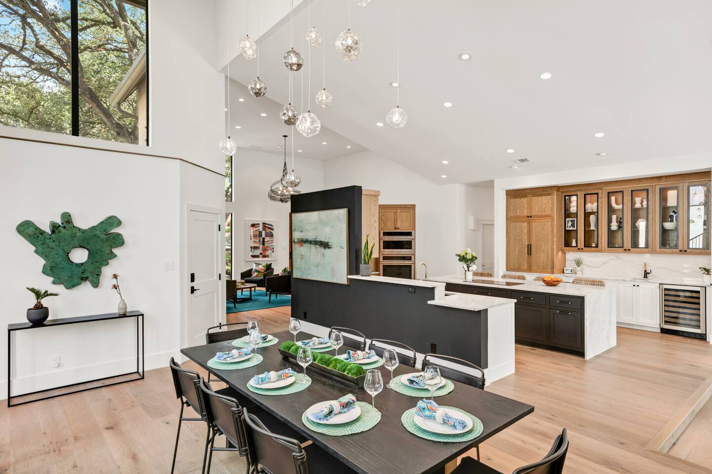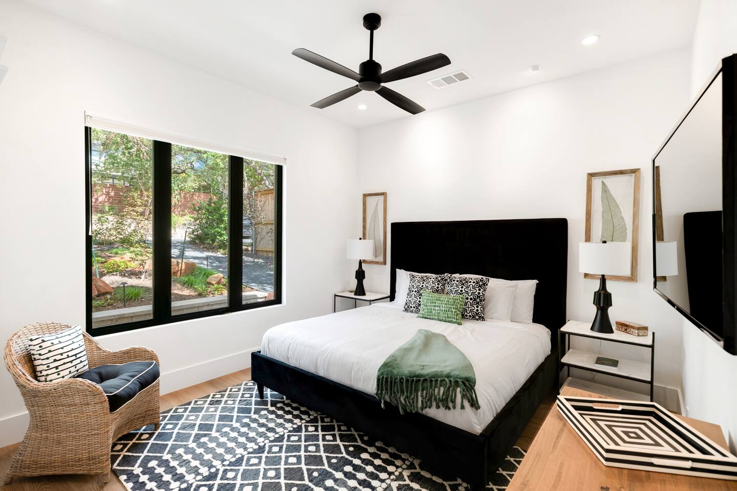 We invite you to create your own memories at this luxe retreat perfect for corporate groups, families or a rendezvous with friends. Tall ceilings plus big picture windows help the space feel spacious and bring in the outdoors. This home is the ultimate combination of luxury, comfort, and convenience. Please note this home is NOT suitable for parties, events, or bachelor parties. OUTDOOR LIFESTYLE Your group will fall in love with this backyard oasis complete with luxury outdoor kitchen, living, dining, and 6' deep saltwater pool (option to heat the pool)! Enjoy BBQs in the fully equipped outdoor kitchen featuring a propane grill, outdoor refrigerator, ice maker and ample seating for sharing meals on the patio. After an eventful day in Austin, gather your group to relax poolside while enjoying tunes from the Sonos sound system. The outdoor living area has a fireplace for cozy nights by the fire with a glass of wine. A large TV with Netflix, Amazon Prime, YoutubeTV sits just above the fireplace. The backyard feels like a sanctuary as it backs into lush foliage from old shade trees and tall ivy fencing on either side for a private escape. Whether you’re looking to gather or retreat, you’ll find your happy place here. COMFORTABLE & SPACIOUS INTERIOR This home boasts a modern and bright décor throughout. The eat-in kitchen is fully equipped with a convection stove, double oven, warming drawer and wine fridge, and everything you'll need to comfortably prepare meals. For formal group dinners, gather your group around the dining table for a good meal and good conversation. The family room living area overlooks the pool and backyard and features plush leather seating for gathering to watch Netflix, Prime or YouTubeTV. There is a formal living area as well, with large windows which frame huge oak tress and provide a beautiful space for conversation or quiet reading. Bedroom 1: The Primary - King bed with full en suite bathroom, seating area, in-room TV and private deck overlooking the pool and backyard. Bedroom 2: The Second Primary - King bed with full en suite bathroom, and in-room TV. Bathroom has walk-in shower & soaking tub. Bedroom 3: Queen bed with full en suite bathroom, in-room TV Bedroom 4: Queen bed with full en suite bathroom, in-room TV Bedroom 5/6: Game Room Flex Space - Each comfortable pullout queen bed is in a separate space which can be closed off for privacy from the other. Private bathroom. As a game room, there is a game table for pool or air hockey and other games. This space as an 85" TV and a private deck overlooking the pool & backyard. All our bathrooms are well-stocked with plush towels and toiletries. Pool towels are also available. Additional amenities include a washer/dryer, complimentary Wi-Fi, a Pack ‘n Play, and a pool safety gate. Free parking in driveway and on the street. Pool can be heated during the cooler months at an additional cost. Inquire for details. CONVENIENT LOCATION You wouldn’t believe you’re just 8 minutes from the hustle and bustle of Downtown Austin. Located in one of Austin’s most highly coveted neighborhoods, Tarrytown, with elegant houses and peaceful parks. Just a few minutes’ walk will lead you to Lake Austin where you'll find a variety of restaurants and coffee shops overlooking the water. If you want a fun day out on the lake, bring your boat! The public boat launch for Lake Austin is just down the road. **ACL is just 3.8 miles away!