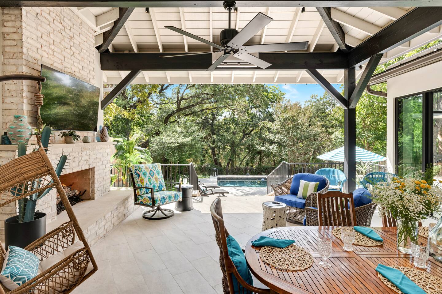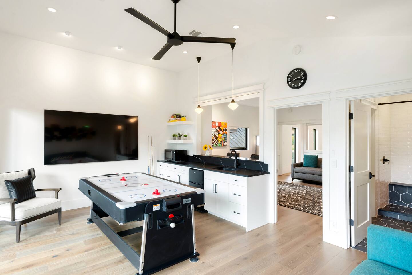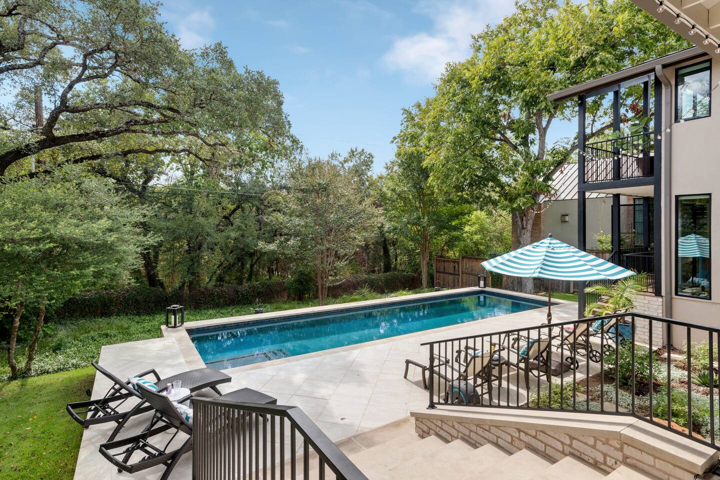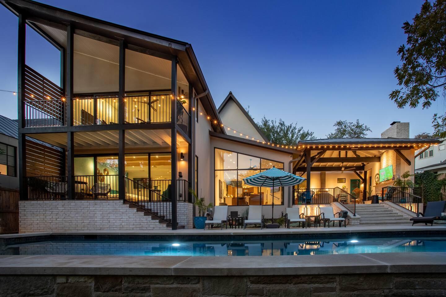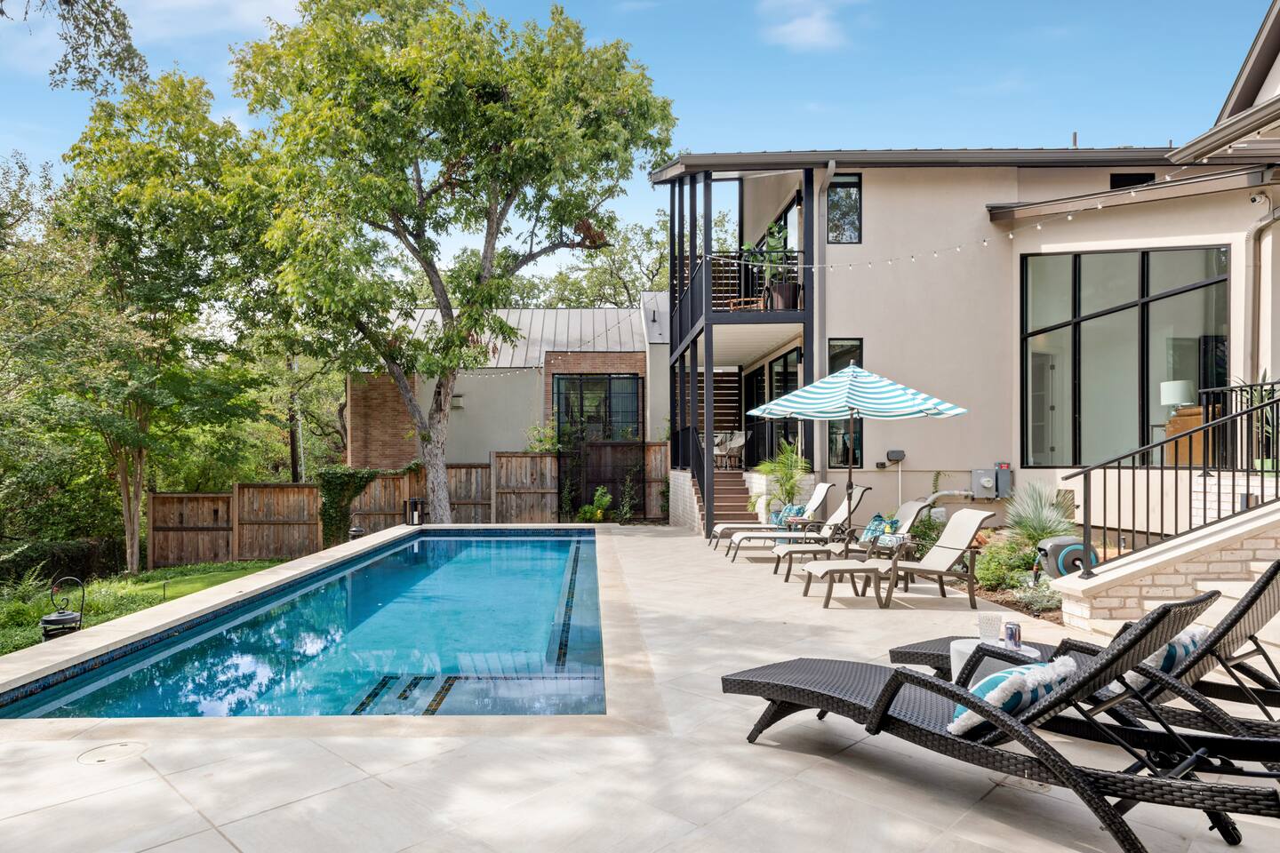 Nestled in Tarrytown, this newly renovated upscale home has a private pool, outdoor kitchen, and lush surroundings. It's your sanctuary after exploring Austin's vibrant scene. The spacious layout seamlessly connects the patio, family room & kitchen, ideal for group gatherings. Retreat to en suite bedrooms or enjoy the game room, pool & air hockey table ready for play. This is a great home for corporate team meetings, offering comfortable areas with TVs with Roku Screen Mirroring for presentation