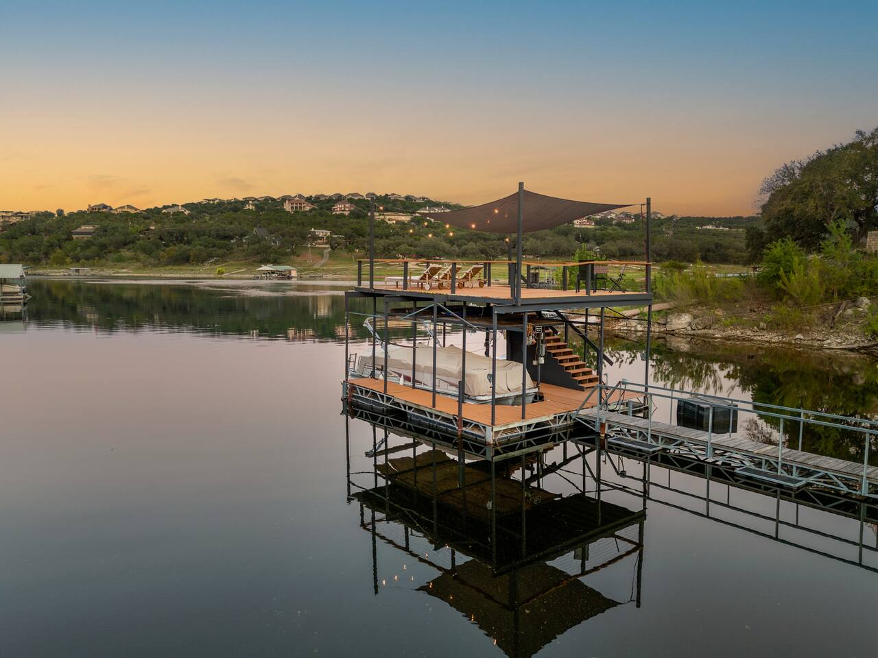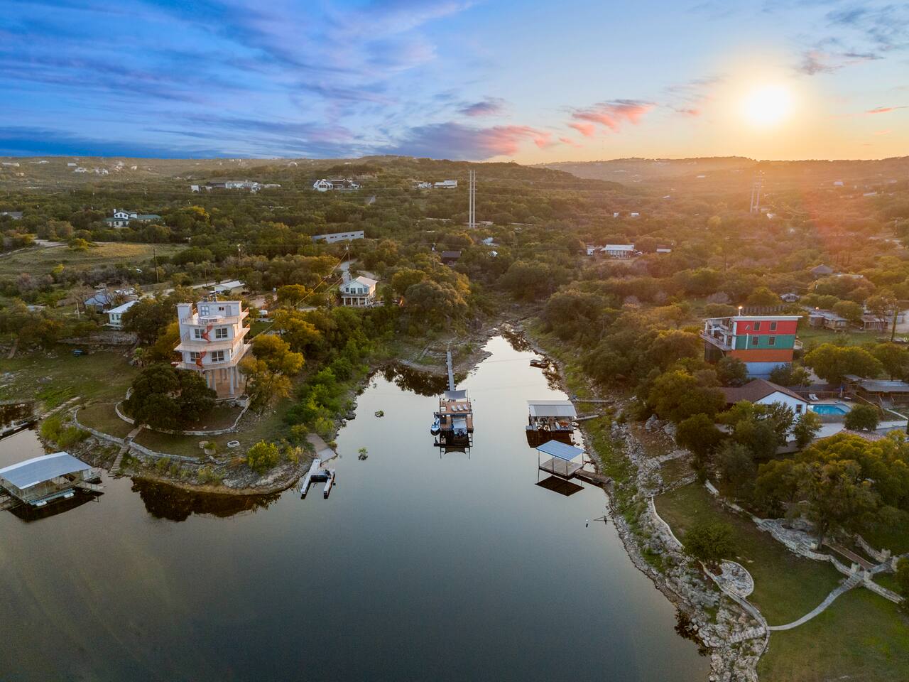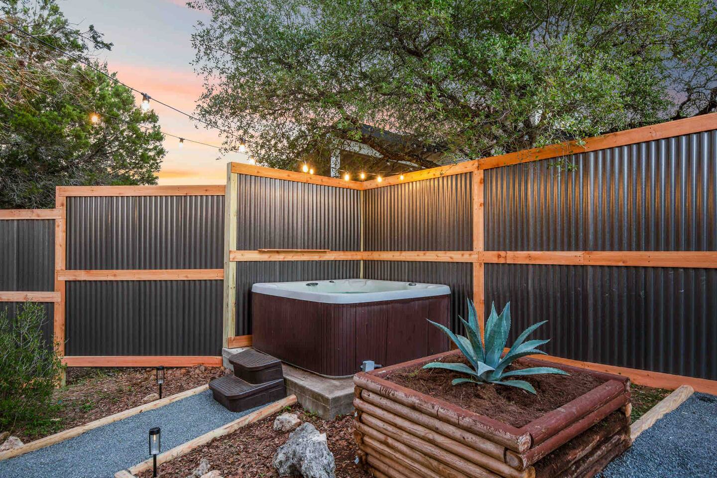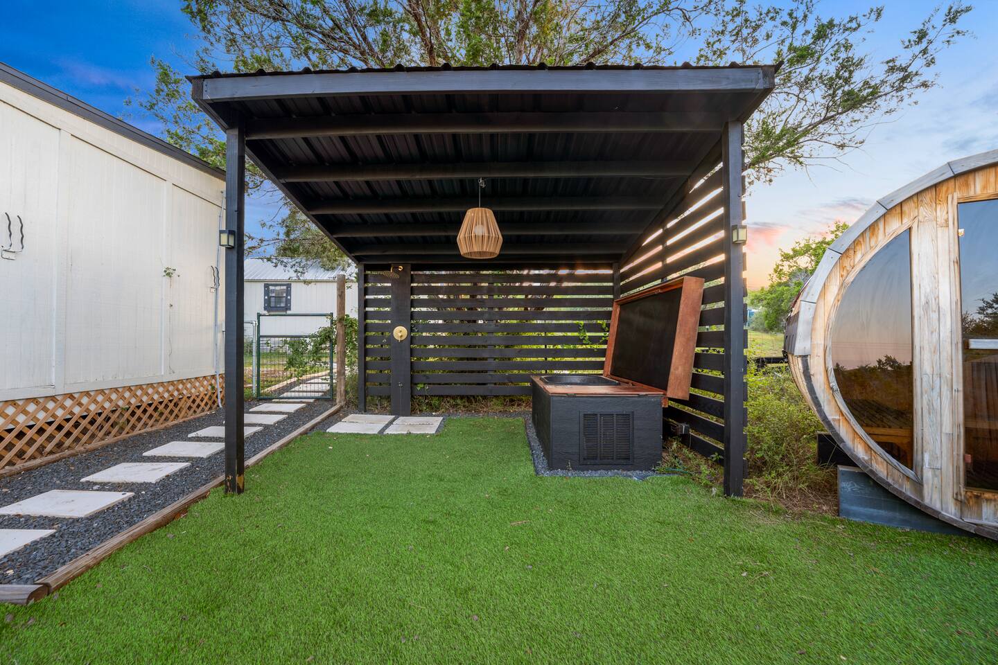The Gary is located on a property with 3 other cabins. It features one king-sized bed, kitchen TV, AC, personal hot tub, grilling & firepit area. On Texas Time Properties has a total of 4 cabins on site. They are spread out on the property giving you and your guests space to your own. 📍 Close to Everything You’ll Love 5 min → Frontyard Brewery 🍺 5 min → Willie Nelson’s Luck Ranch 🎶 15 min → Pace Bend State Park 🌲 35 min → Downtown Austin 🎉 💪 Shared Resort-Style Amenities: - Full gym (2 weight racks, free weights, Peloton Bike & Treadmill) - Sauna, & invigorating cold plunge - Refreshing outdoor shower - Private two-level dock with lake access - 2 paddle boards included for your adventure Fun Add-Ons to Make Your Stay Extra Special 💕 Romantic or Birthday Celebration Packages 🚤 Retro Boat Cruise 🌅 Captained Boat Ride (Daytime or Sunset) 🎬 Movie Night Under the Stars 👉 Ask us for details and we’ll help you plan the perfect experience!