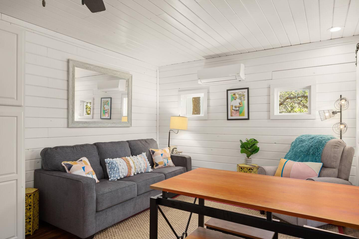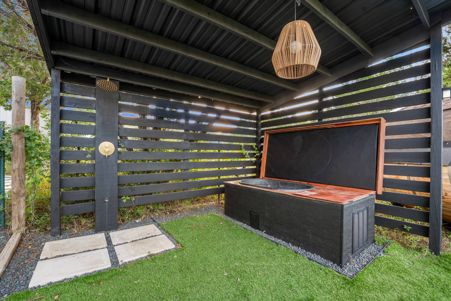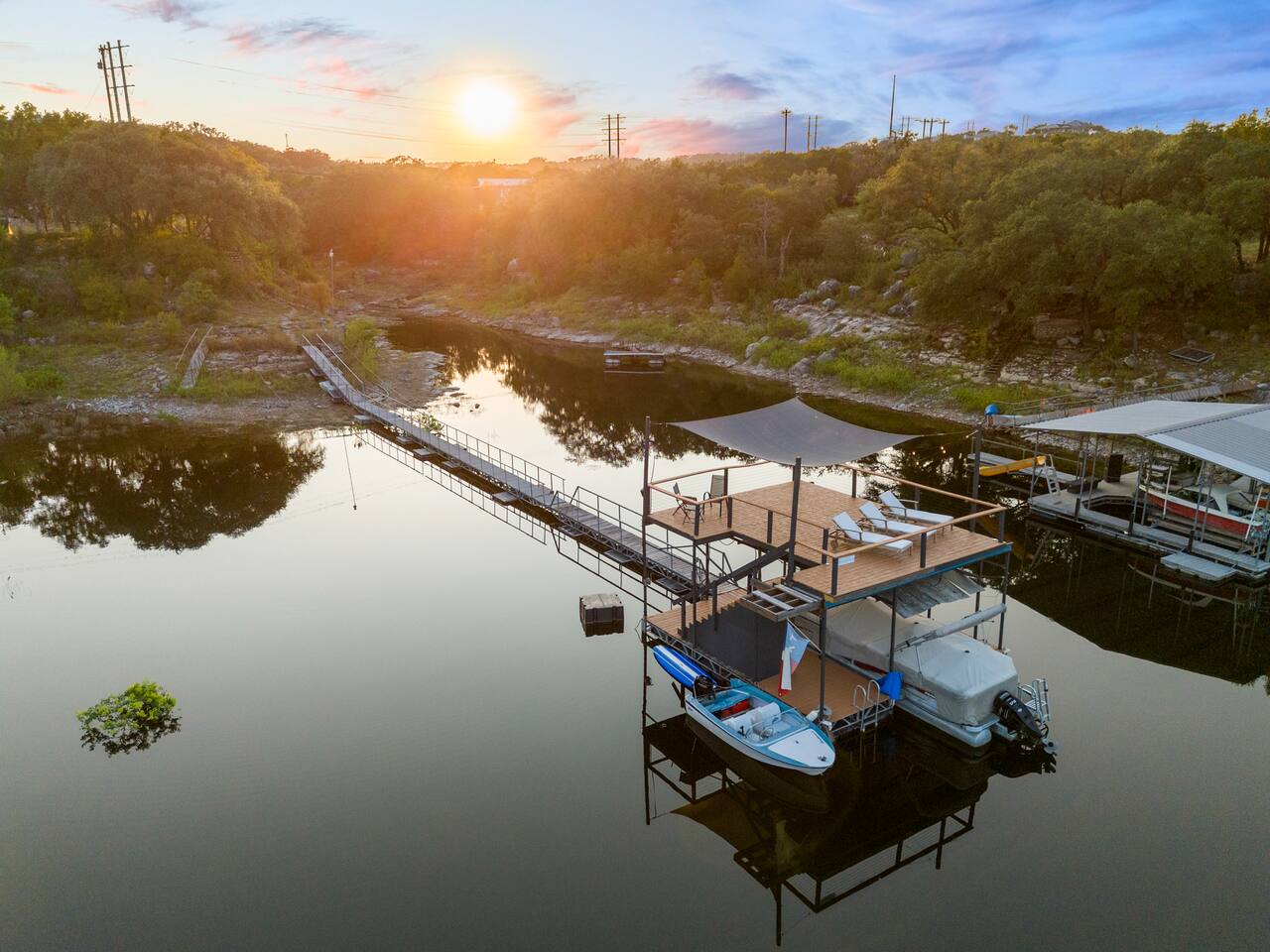 The Matthew is located on a property with 3 other cabins. It features one king bed, kitchen, pullout couch, TV, AC, personal grilling & firepit area. On Texas Time Properties has 4 cabins on site. They are spread out on the property giving you and your guests space to your own. 📍 Close to Everything You’ll Love 5 min → Frontyard Brewery 🍺 5 min → Willie Nelson’s Luck Ranch 🎶 15 min → Pace Bend State Park 🌲 35 min → Downtown Austin 🎉 💪 Shared Resort-Style Amenities: - Full gym (2 weight racks, free weights, Peloton Bike & Treadmill) - Hot tub, sauna, & invigorating cold plunge - Refreshing outdoor shower - Private two-level dock with lake access - 2 paddle boards included for your adventure Traveling with Children: pack-n-play available. Need advanced notice if requested. Fun Add-Ons to Make Your Stay Extra Special 💕 Romantic or Birthday Celebration Packages 🚤 Retro Boat Cruise 🌅 Captained Boat Ride (Daytime or Sunset) 🎬 Movie Night Under the Stars 👉 Ask us for details and we’ll help you plan the perfect experience!