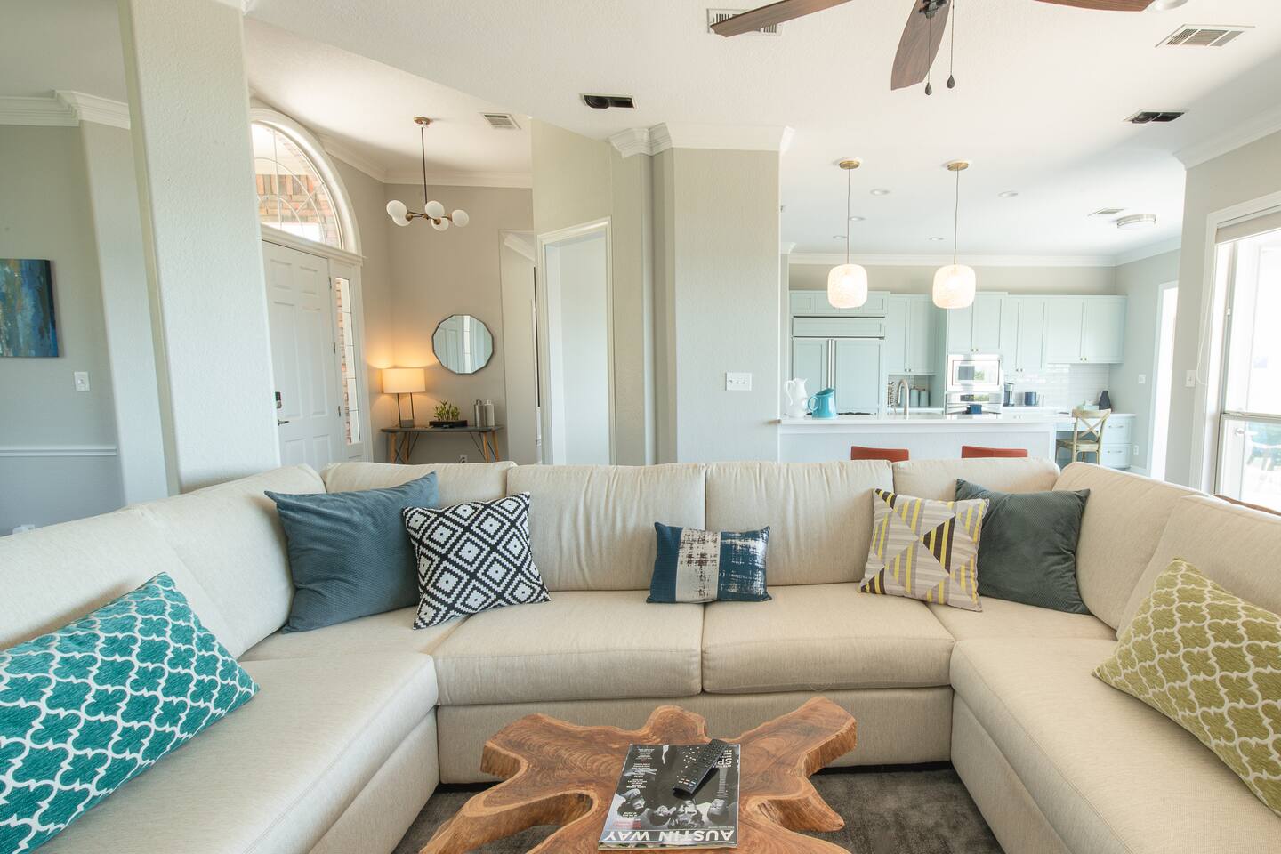 MCMVilla features expansive views of Lake Travis, large bedrooms, a spacious kitchen with an open floor plan perfect for entertaining your large group & 10 person dining table with lake views. Grill on the patio or hang out in the game room with a pool table. Nights will be well spent enjoying the hot tub. Get your friends and family together for a fun time on beautiful Lake Travis! Just 30 minutes to downtown Austin. Pets ok w/fee.