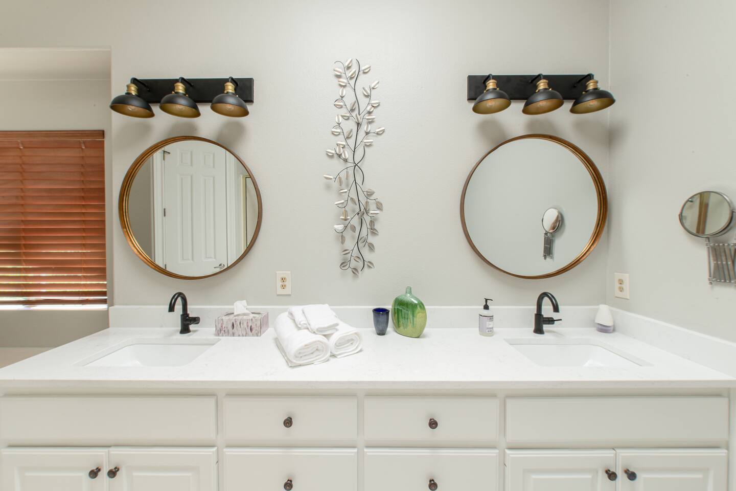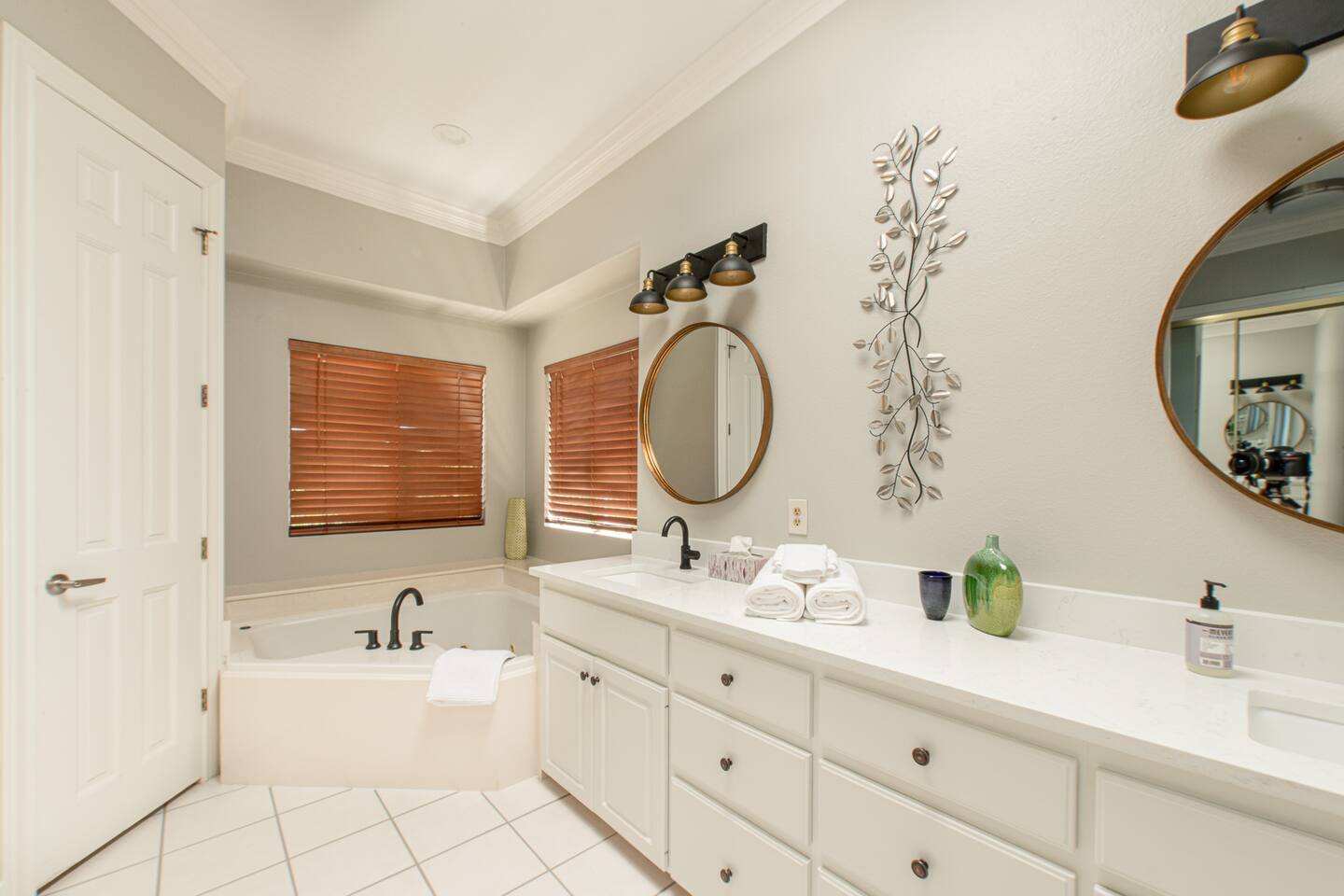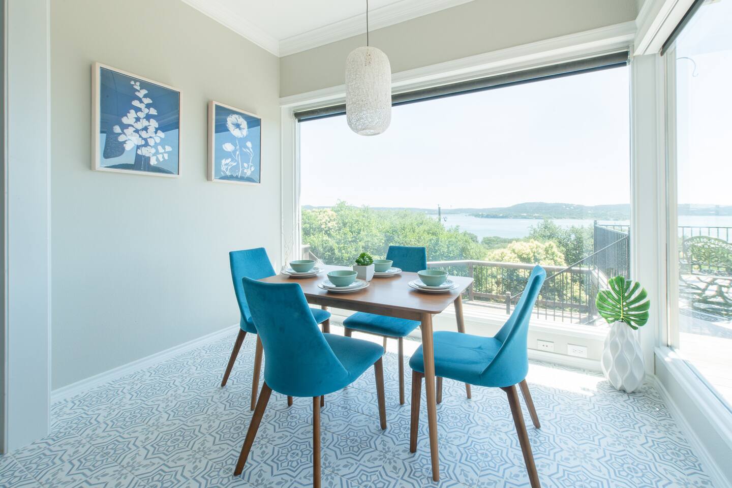 As you arrive at MCMVilla, you’ll be taken aback by the incredible views of Lake Travis. This recently renovated home has everything you'll need for a memorable time at the lake with family and friends. Hit the lake and enjoy our proximity to five nearby marinas and areas for swimming, fishing, and boat rentals. Upon booking you'll receive a welcome guide with more information on things to do and to help you plan your trip. Lakeway is a family-friendly and upbeat lake community where you'll find everything from casual to fine dining, bars, parks and family-friendly activities. It's perfectly situated by Lake Travis, the scenic Texas Hill Country where you can explore natural swimming holes and wineries, and just a 30-minute drive to Downtown Austin for a night on the town! You'll find plenty to do over the course of a week. Please note the home is not directly on the water but so close to everything! After a day on the lake, enjoy coming home to a clean, spacious, and well-decorated space perfect for entertaining large groups. There is a game room with a pool table on the lower level and a hot tub for winding down and enjoying evenings under the stars. You will find rest and relaxation here and plenty of ways to keep the kids entertained. The kitchen is well equipped with a gas range, dishwasher, refrigerator, Keurig coffee maker (complimentary coffee provided), pots, pans, bakeware, cutting boards, microwave, knives, basic spices and just about everything you'll need for cooking and entertaining! The casual breakfast nook overlooks stunning Lake Travis views. Enjoy your morning coffee on the patio and evenings on the deck grilling on the propane grill (propane provided) as you watch the sun set over the lake. Each bedroom has it's own in-room TV and curtains to help you sleep in (vacation mode!). There are four bedrooms and 3.5 bathrooms. On the main level, you'll find the King bed in the master bedroom with an ensuite bathroom featuring a spa tub and beautiful lake views. On the main floor is also a half bathroom. The lower level leads to the rest of the bedrooms: Bedroom 2: Double bed with closet and desk, (green room) Bedroom 3: Two Double beds plus single bed (yellow room) The Green room and Yellow Room share a spacious bathroom with double vanity and tub/shower combination. Bedroom 4: King bed (pink room) Playroom: Pool table and Futon The Pink room and playroom share a Full bathroom with tub/shower combination We know you'll have lots of fun and make tons of memories at MCM Villa on beautiful Lake Travis!