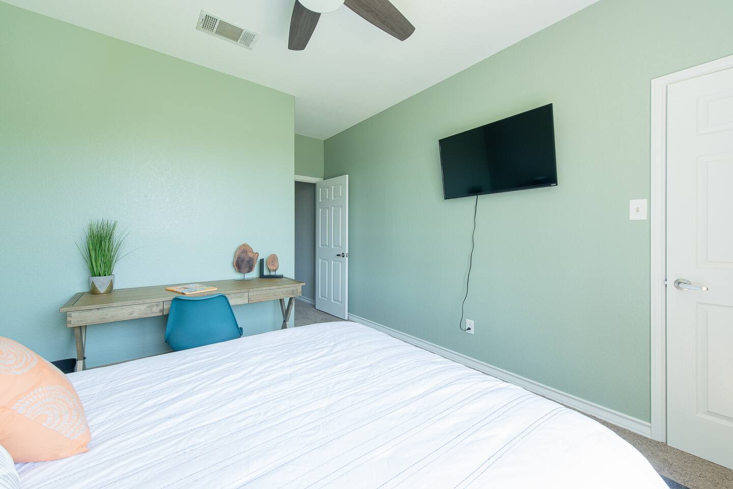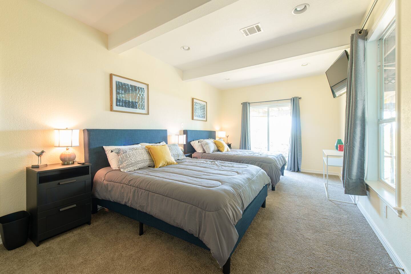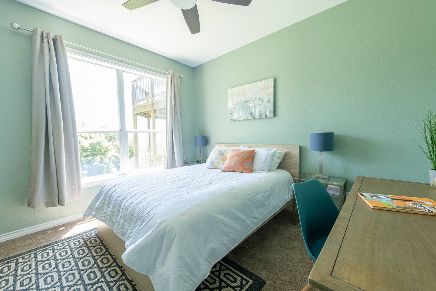 As you arrive at MCMVilla, you’ll be taken aback by the incredible views of Lake Travis. This recently renovated home has everything you'll need for a memorable time at the lake with family and friends. Hit the lake and enjoy our proximity to five nearby marinas and areas for swimming, fishing, and boat rentals. Upon booking you'll receive a welcome guide with more information on things to do and to help you plan your trip. Lakeway is a family-friendly and upbeat lake community where you'll find everything from casual to fine dining, bars, parks and family-friendly activities. It's perfectly situated by Lake Travis, the scenic Texas Hill Country where you can explore natural swimming holes and wineries, and just a 30-minute drive to Downtown Austin for a night on the town! You'll find plenty to do over the course of a week. Please note the home is not directly on the water but so close to everything! After a day on the lake, enjoy coming home to a clean, spacious, and well-decorated space perfect for entertaining large groups. There is a game room with a pool table on the lower level and a hot tub for winding down and enjoying evenings under the stars. You will find rest and relaxation here and plenty of ways to keep the kids entertained. The kitchen is well equipped with a gas range, dishwasher, refrigerator, Keurig coffee maker (complimentary coffee provided), pots, pans, bakeware, cutting boards, microwave, knives, basic spices and just about everything you'll need for cooking and entertaining! The casual breakfast nook overlooks stunning Lake Travis views. Enjoy your morning coffee on the patio and evenings on the deck grilling on the propane grill (propane provided) as you watch the sun set over the lake. Each bedroom has it's own in-room TV and curtains to help you sleep in (vacation mode!). There are four bedrooms and 3.5 bathrooms. On the main level, you'll find the King bed in the master bedroom with an ensuite bathroom featuring a spa tub and beautiful lake views. On the main floor is also a half bathroom. The lower level leads to the rest of the bedrooms: Bedroom 2: Double bed with closet and desk, (green room) Bedroom 3: Two Double beds plus single bed (yellow room) The Green room and Yellow Room share a spacious bathroom with double vanity and tub/shower combination. Bedroom 4: King bed (pink room) Playroom: Pool table and Futon The Pink room and playroom share a Full bathroom with tub/shower combination We know you'll have lots of fun and make tons of memories at MCM Villa on beautiful Lake Travis!
